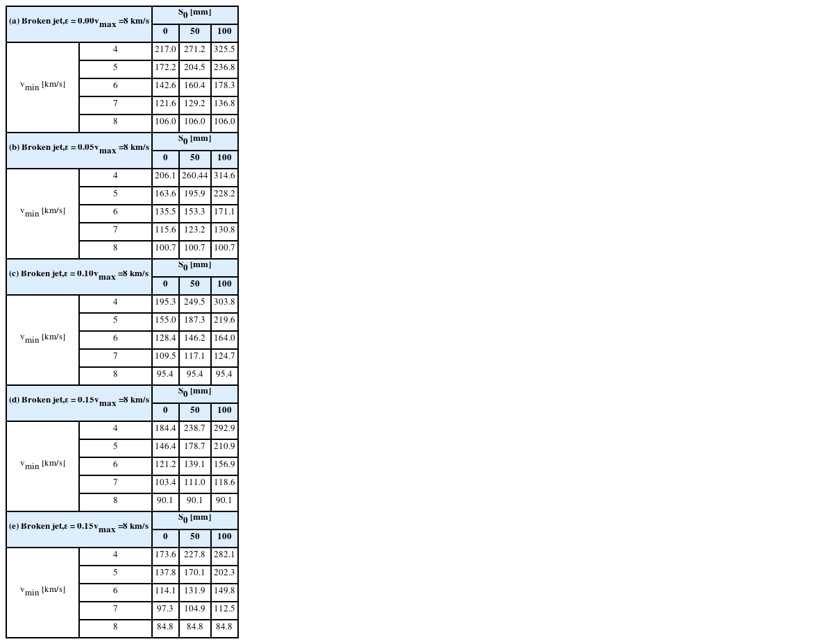 (e) Broken jet, ε = 0.15 vmax =8 km/s |