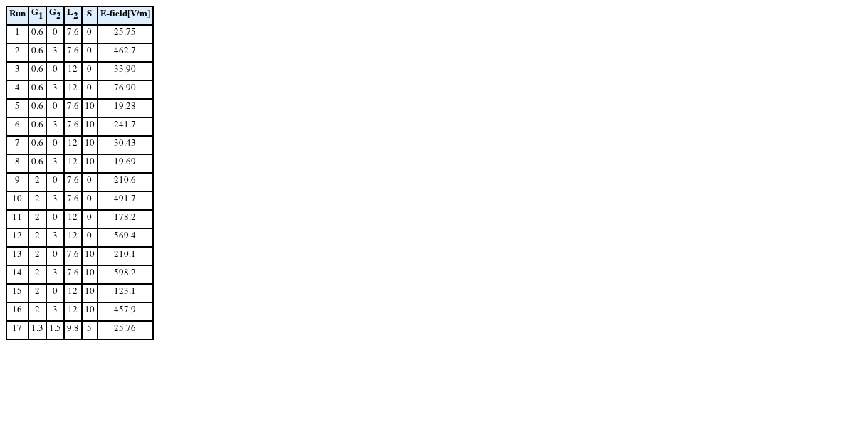 3는 10 mm로 확정하고 설계인자에서 제외하였다. 실험계획법에서 결정해야 할 4개의 설계인자로서 G
