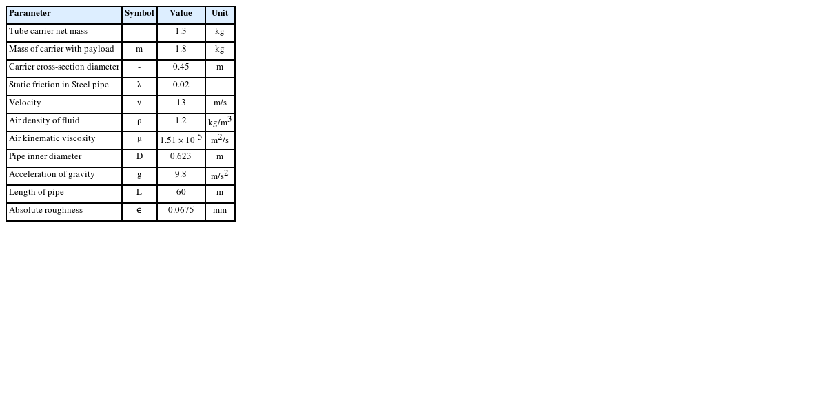 c는 압력 방출 시 캐리어에 직접적으로 압력이 접촉되는 면적이며, 단위 변환을 하면 필요한 압력은 최소 4.1 bar로 예측이 되었다. 이송 캐리어를 기송관 배관을 이용하여 목적지까지 이송할 경우 필요로 하는 압축 공기 소비량은