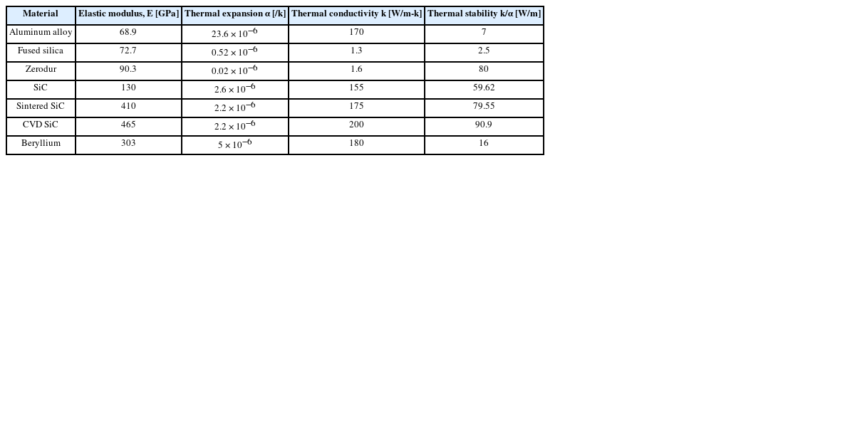 Table 1 Mechanical and thermal properties of reflective mirror substrates