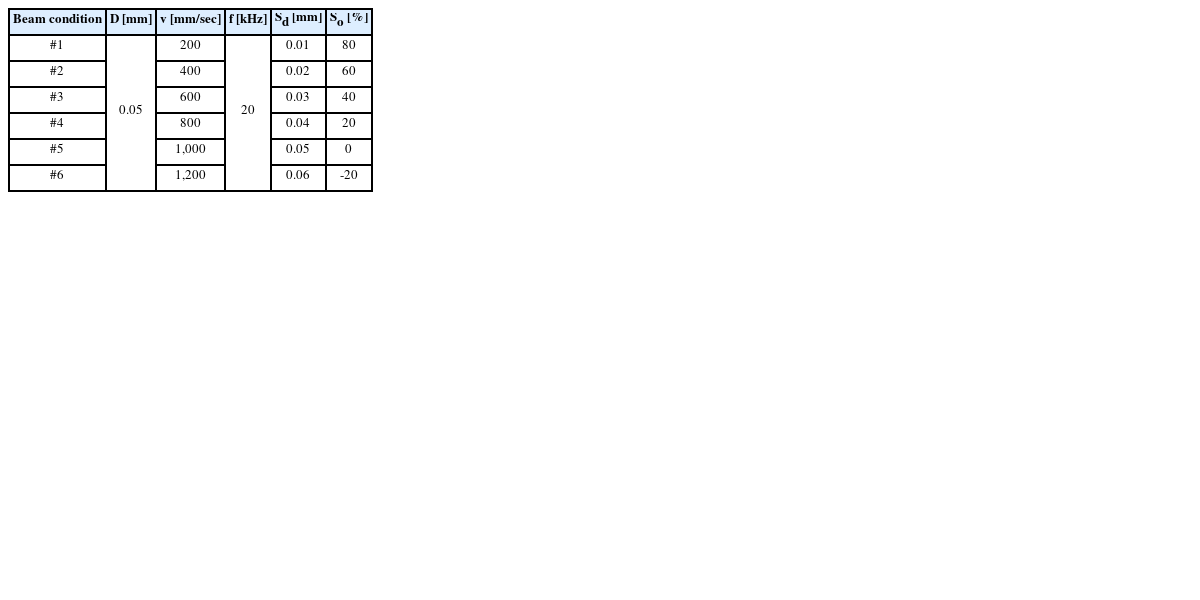 Table 1Laser spot distance (Sd) and laser spot overlap (So) calculation that vary depending on the laser speed (v)