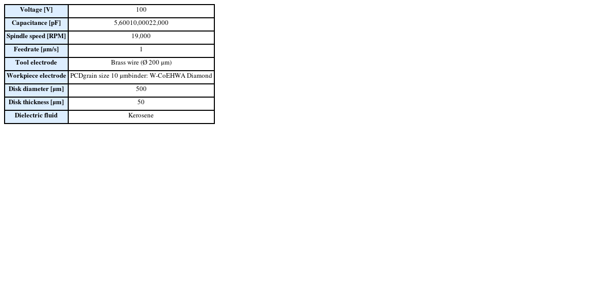 17]. 축전용량을 크게 하면 단발 방전 에너지가 증가하여 방전흔(Crater)의 크기가 증가하게 되고 방전흔의 돌기 또한 커지므로 PCD 공구의 표면 거칠기가 증가하게 된다