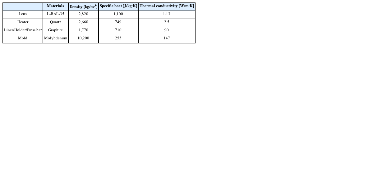 8]. 본 연구에서 사용된 렌즈는 L-BAL-35 (Ohara Corp. Kanagawa, Japan)이다. 유리 성형에서 렌즈 온도 범위에 대한 정의가 있으며,