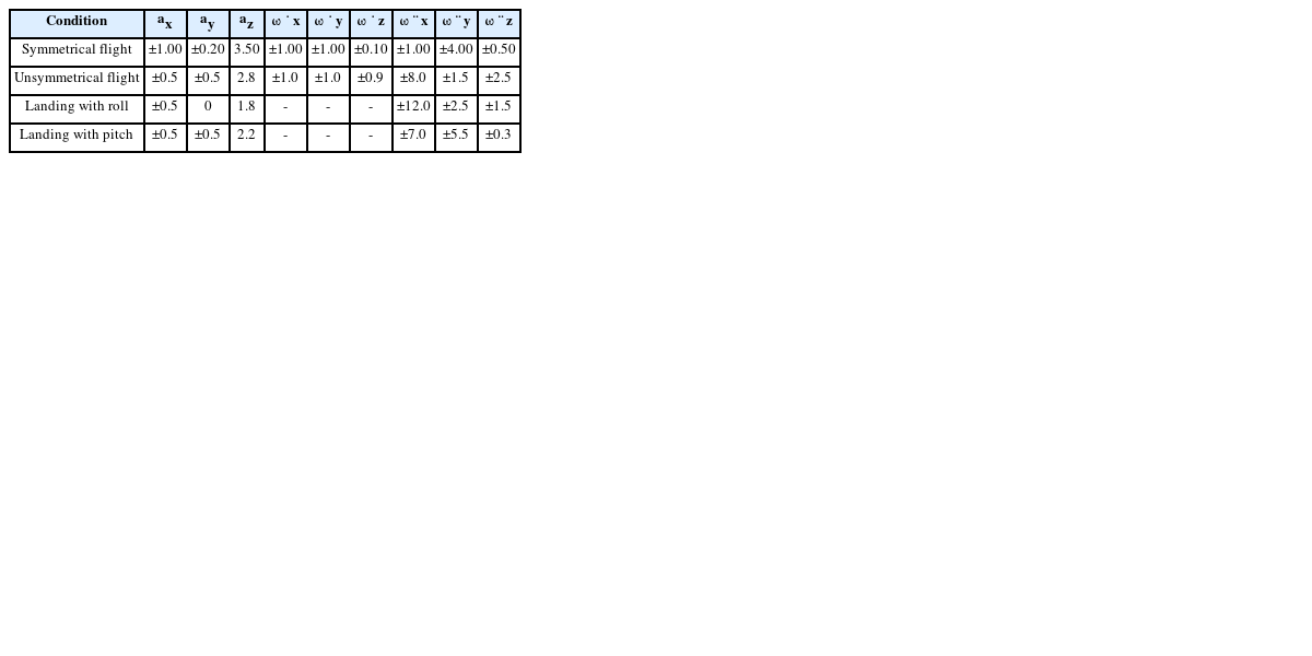 Unsymmetrical flight ±0.5 ±0.5 2.8 ±1.0 ±1.0 ±0.9 ±8.0 ±1.5 ±2.5