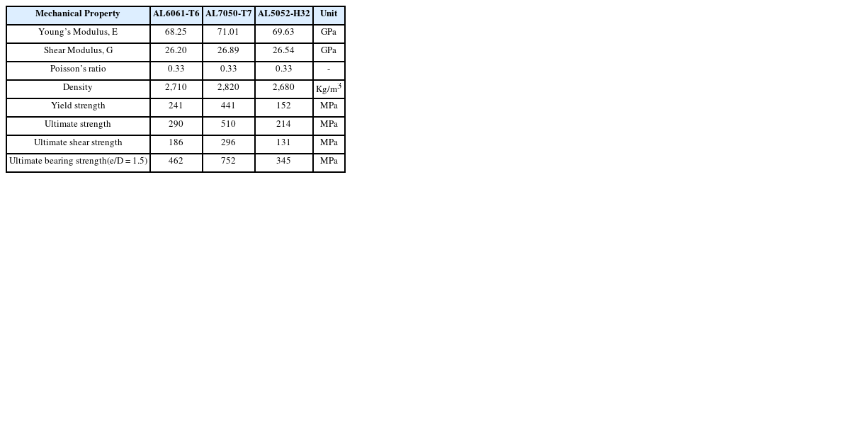 Mechanical Property AL6061-T6 AL7050-T7 AL5052-H32 Unit