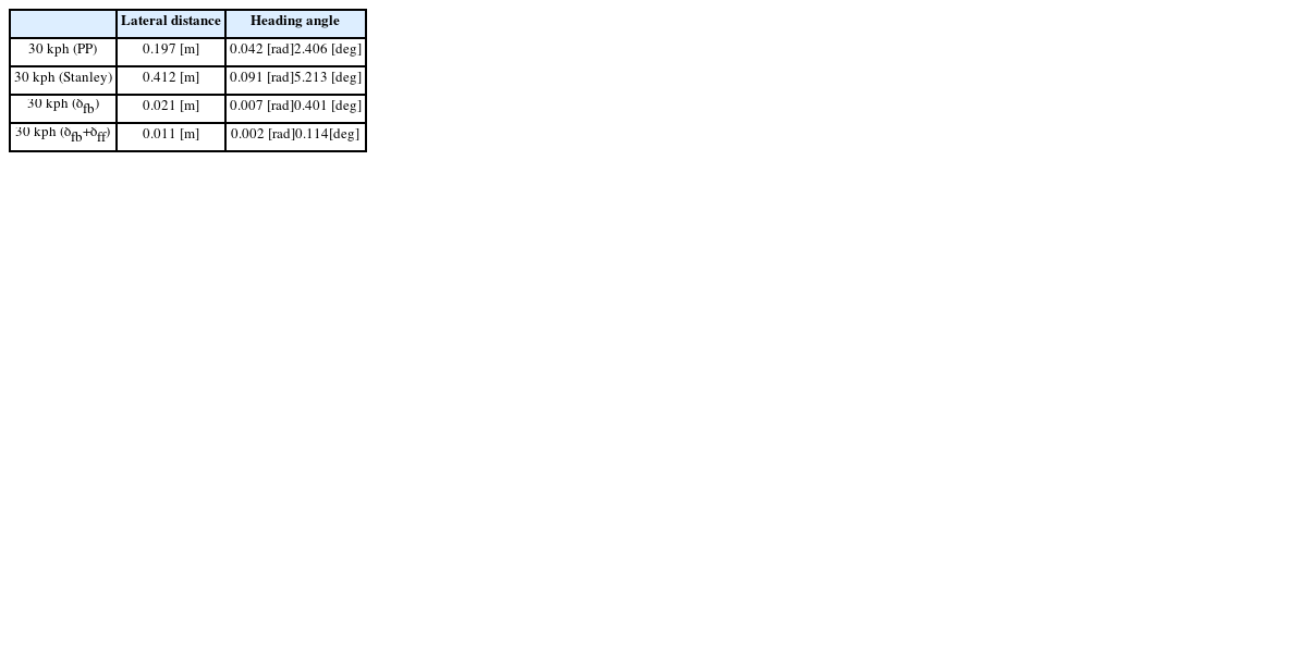 Table 7Lateral distance error and heading angle error RMS at vehicle speed of 20-60 kph in Town05