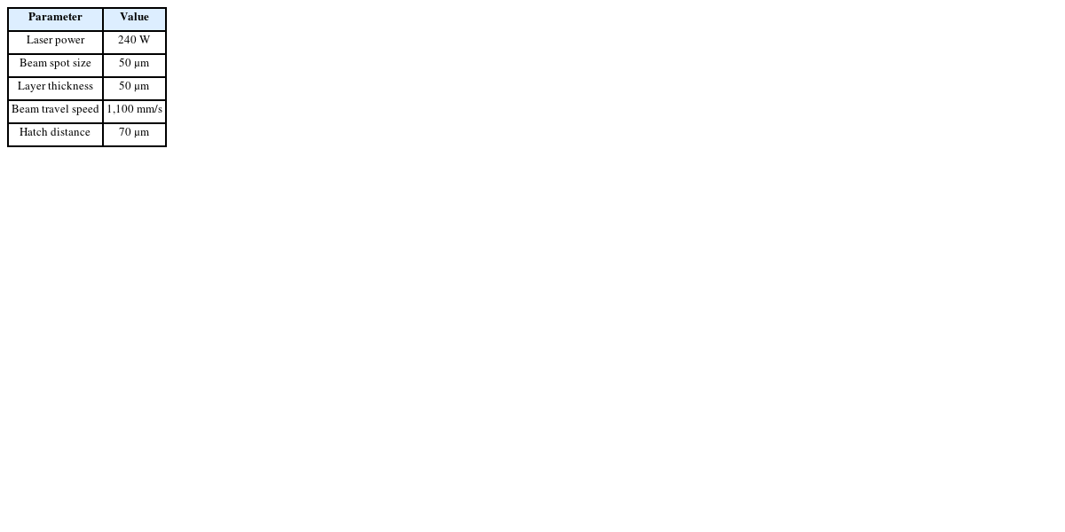 Table 1Process parameters of PBF additive manufacturing