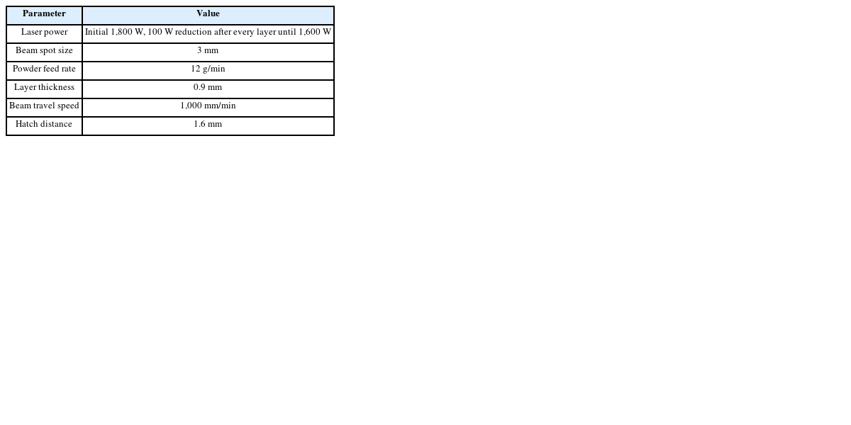 Table 2Process parameters of DED additive manufacturing