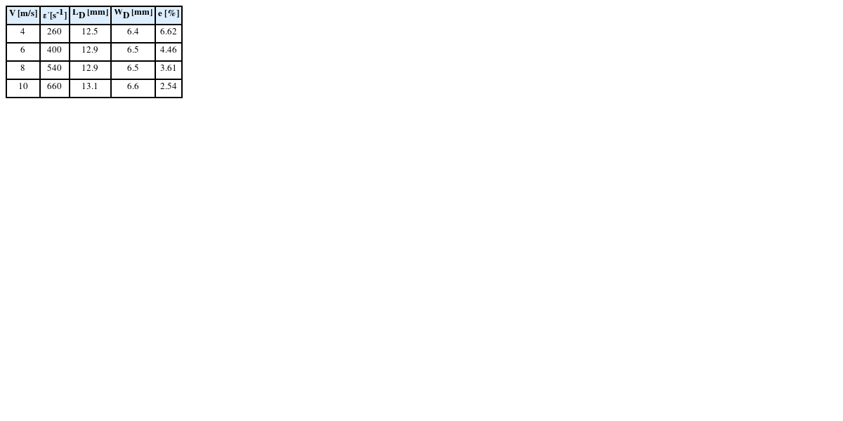 Table 8Percentage error e between the specimen’s actual strain rate and strain rate by SHTB method when LI = 6 mm