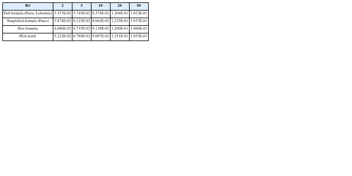 9] that the calculation results of these equations are the same, and the reason is that these equations are derived based on the same Timoshenko-Ehrenfest beam theory. It is noteworthy that the Paros-Weisbord simplified formulas for the rotational compliance are more similar to the finite element analysis (FEA) results than the analytically derived full equations. In addition, Smith et al. [