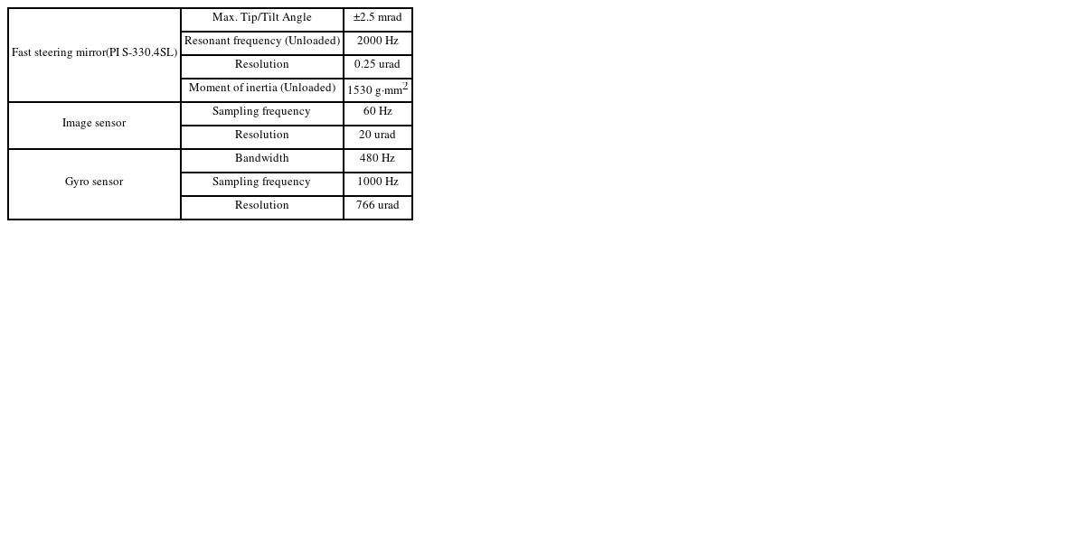 휴대용 장비 운용 시 인체의 손 떨림에 의해 발생하는 진동 외란은 LOS 안정화 성능을 저해하는 주요 요인 중 하나이다. 이를 해결하기 위해서 적응 광학 시스템에서는 일반적으로 CCD 카메라 등의 이미지 센서를 활용하여 LOS 안정화 제어를 수행한다. 하지만, 이미지 센서는 상대적으로 낮은 샘플링 주파수와 그에 따른 높은 시간 지연을 가지며, 이는 안정화 대역폭의 범위를 제한하여 LOS 안정화 성능의 한계를 가지게 한다[