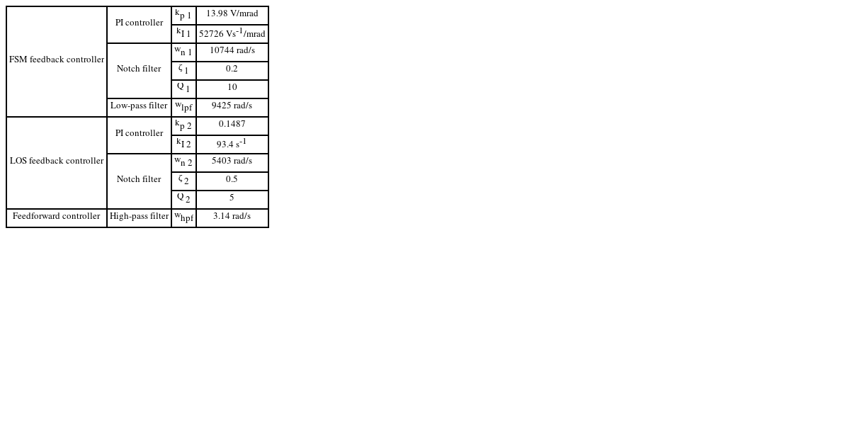 13]. 외란 피드포워드 제어는 피드백 제어 시스템의 루프 안정성에 영향을 주지 않으면서도 넓은 주파수 영역에서 효과적인 외란 저감 성능을 가진다는 장점이 있지만, 효과적인 성능 확보를 위해서는 시스템 모델에 대한 이해와 이를 기반으로 한 정교한 설계가 필요하다. 해당 선행 연구들은 외란 피드포워드 제어기 설계 방안 연구에 집중하여 좋은 효과를 보여주었지만, 외란 억제를 위한 안정화 제어기 및 FSM 제어기 설계 방안, 그리고 시스템에 대한 분석 등의 통합적인 관점에서 제한적으로 기술되었다.