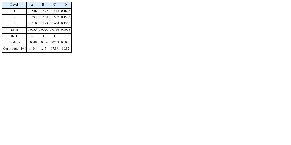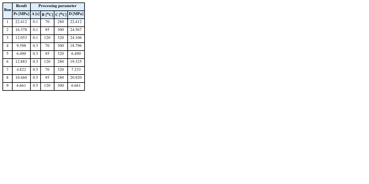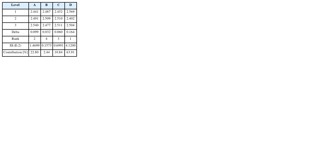 Table 1과 같이 4요인 3수준의 공정 변수표를 구성하였다.