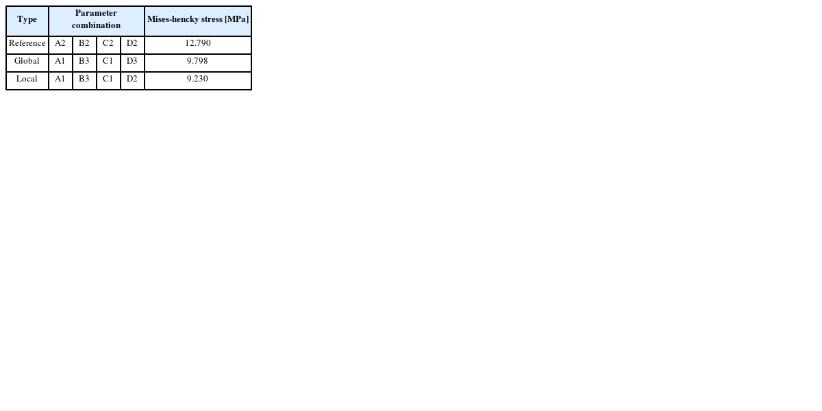Table 7Residual stress (Mises-hencky stress) simulation results