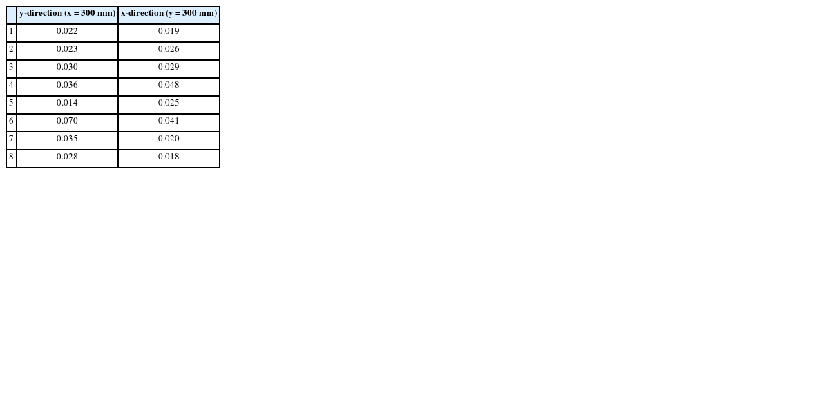 y-direction (x = 300 mm) |