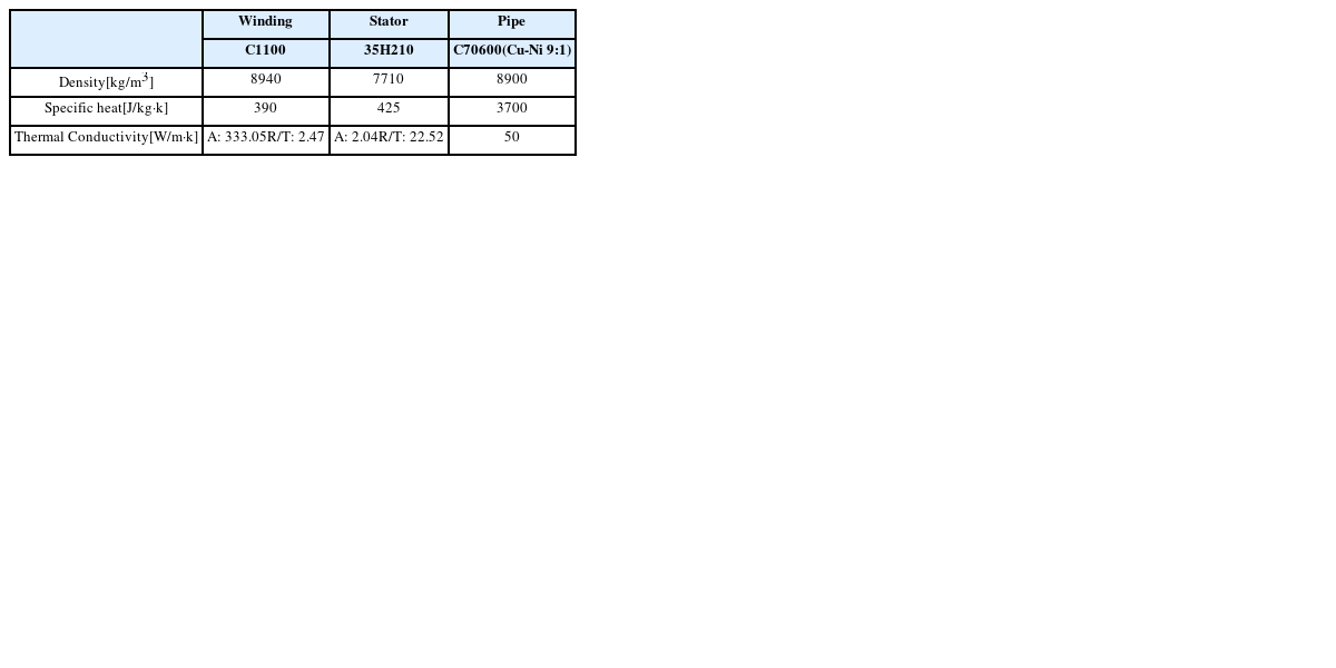 [18], 고정자의 Stacking Factor 값과 등가 열전도도 값으로 고정자 열전도도의 축 방향과 반경 방향에 대한 값을 계산하여 적용하였다