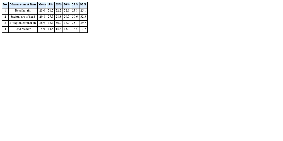 Table 1Dimensions of Korean Adult Heads (6th Size Korea)