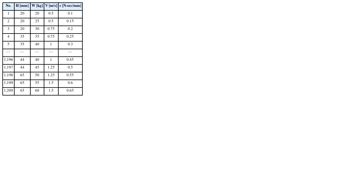 댐퍼의 사양은 로봇의 하중, 에너지 및 충돌 속도 등을 고려하여 선정해야 한다. 이를 위해 실험용 이동 로봇을 기준으로 시간당 충돌 횟수