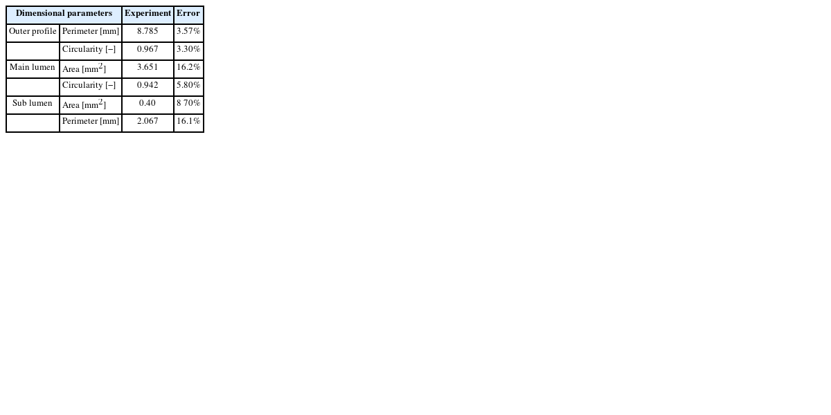 Table 3Dimensional parameters of the simulation and relative error to the target extrudate