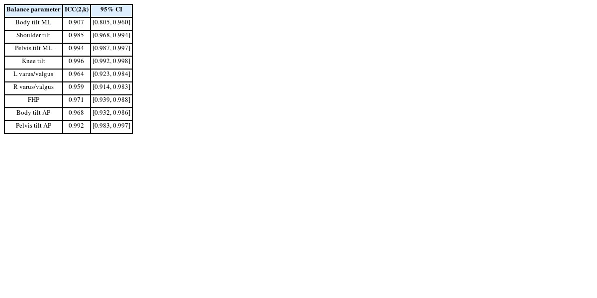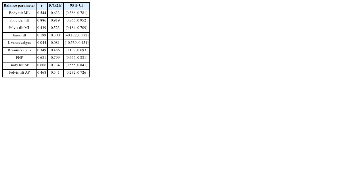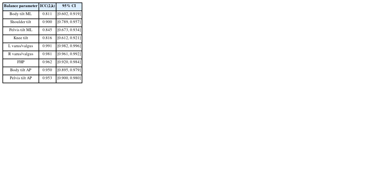 Table 7Repeated-measures ICC(2,k) for the 2D method
