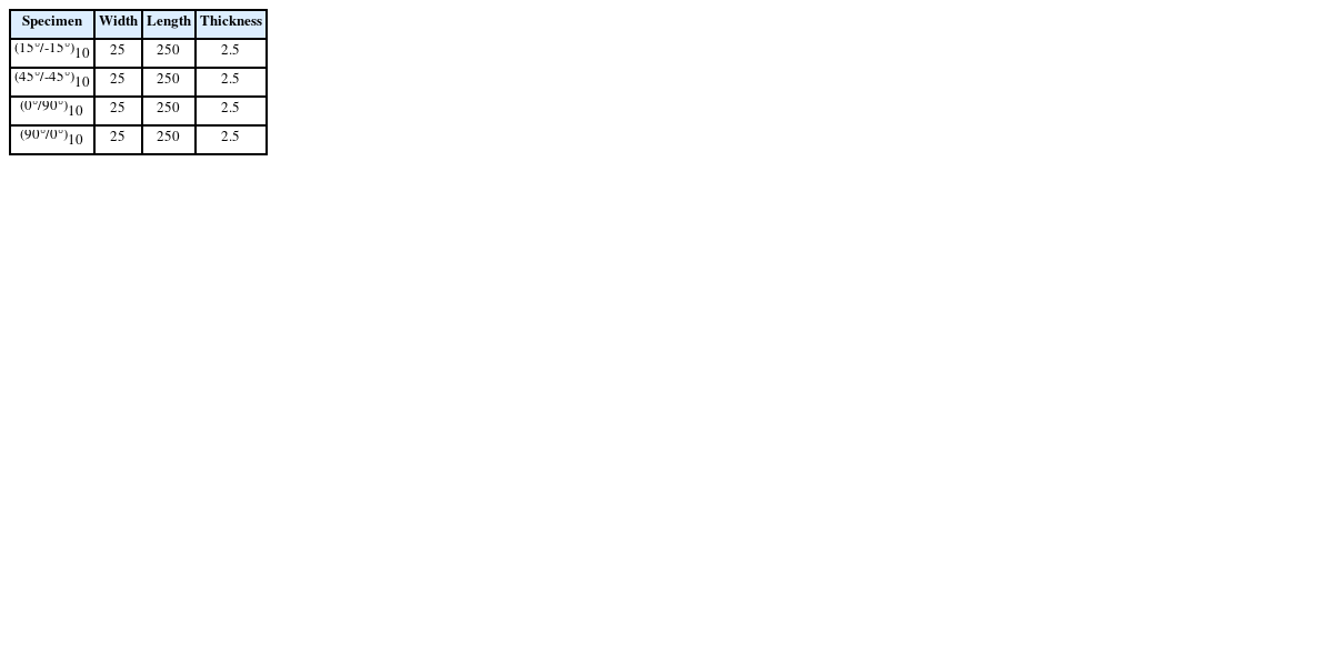 Specimen Width Length Thickness