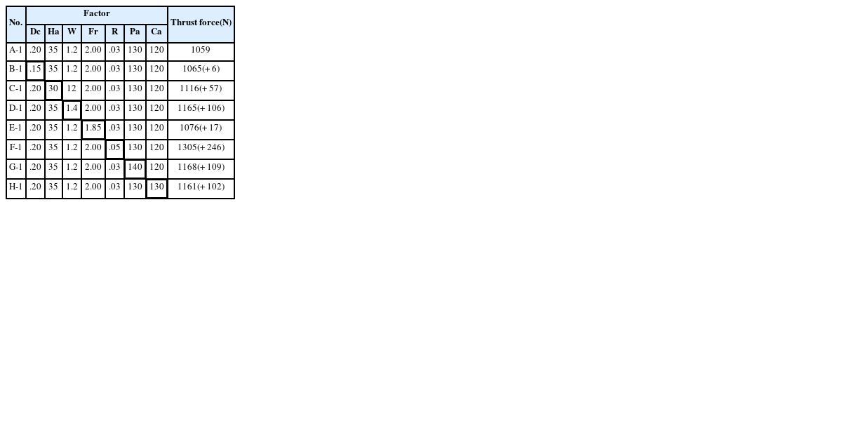 No. Factor Thrust force