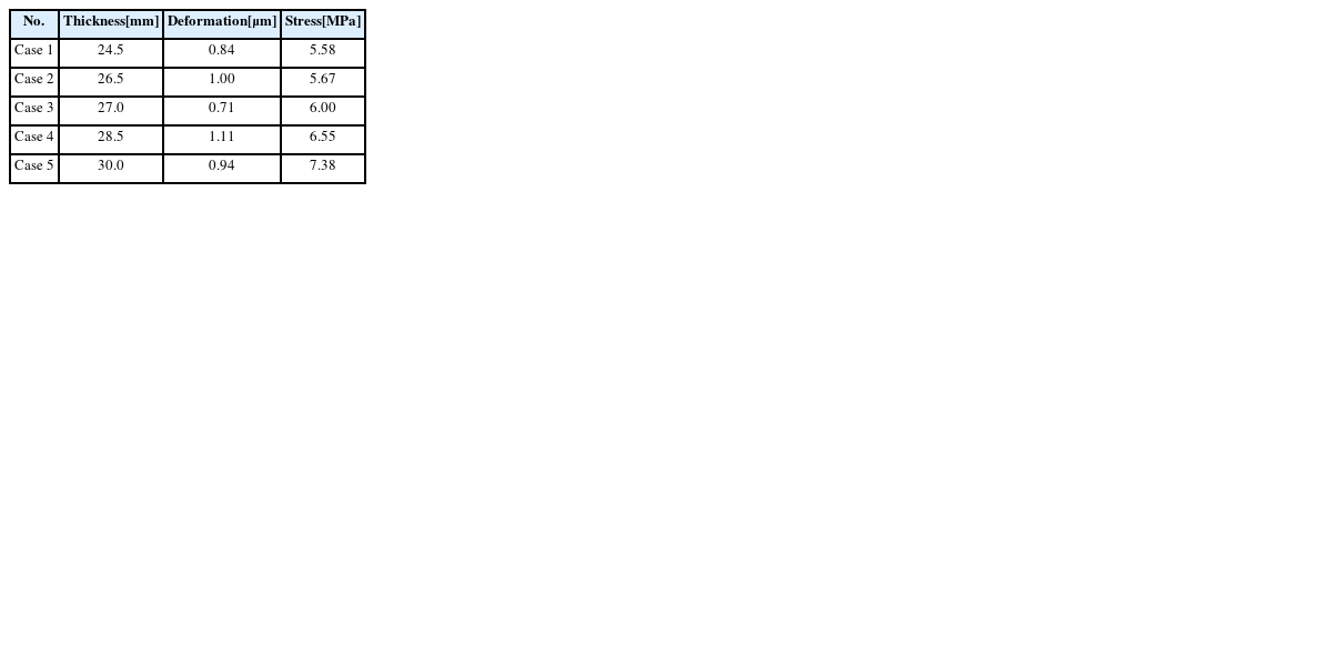 Table 2 Analysis results of the whirling module according to thickness