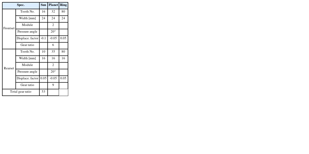 Table 1 Specifications of planetary gear of 2 ton drive reducer