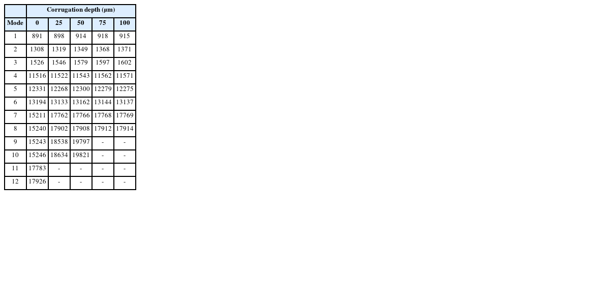 Table 3 Comparison of the natural frequency for various corrugation depths (unit: Hz)