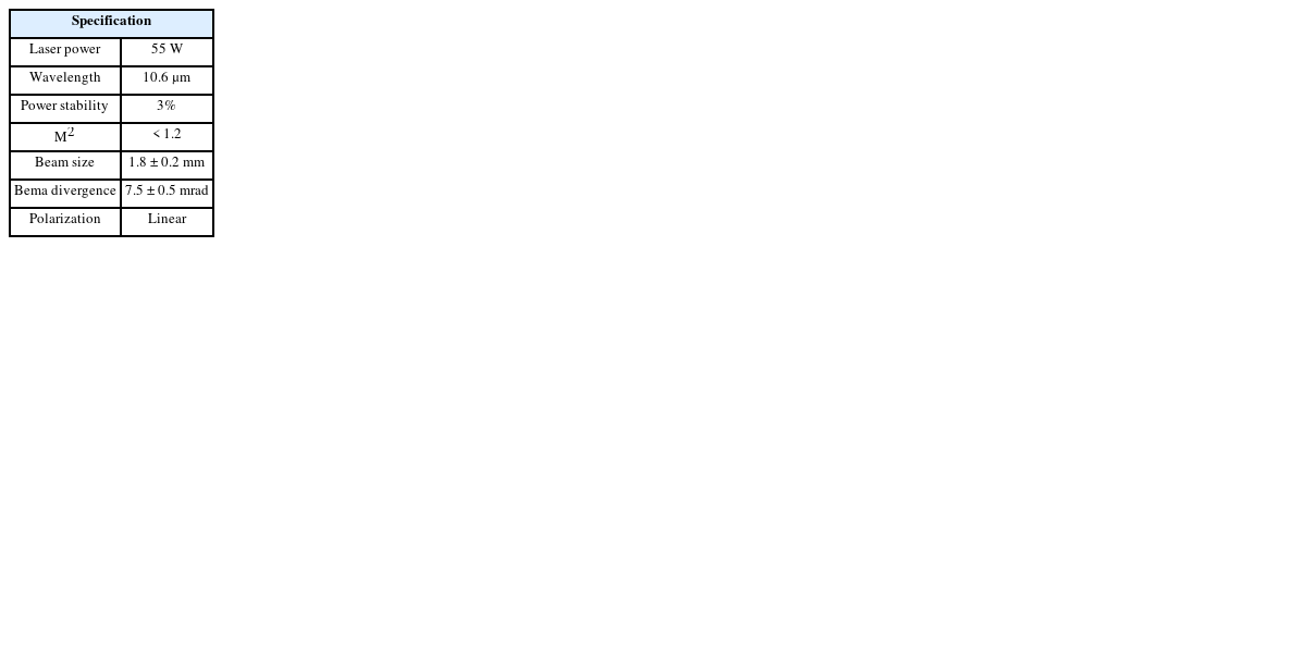 Fig. 1은 실험에 사용된 레이저이며 중심 파장 10.6 μm, 55 W의 최대 출력을 가지는 COHERENT 사의 CO