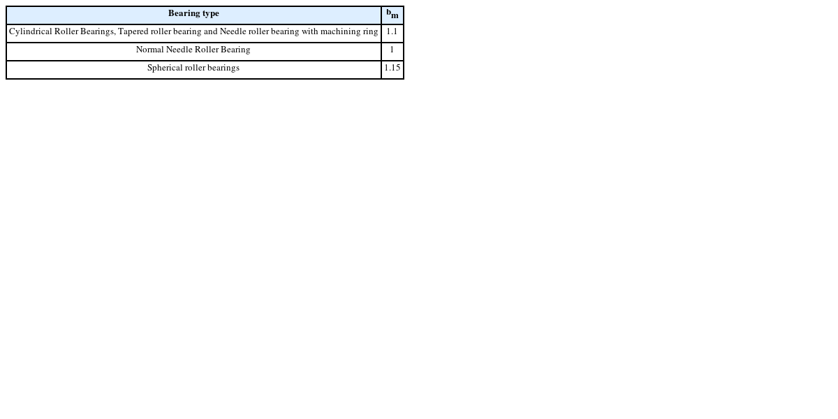 fc는 베어링의 각부의 모양, 가공 정밀도 및 재료에 따라 정해지는 값으로 각각