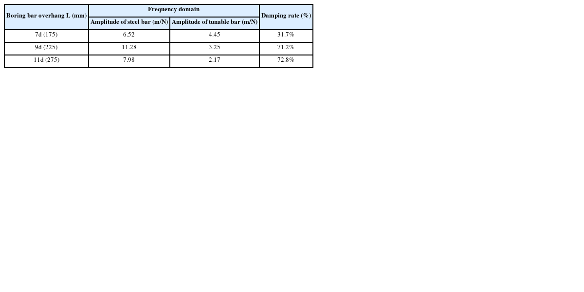 Table 14Comparison between cutting process of steel bar and tunable damped boring bar on frequency domain
