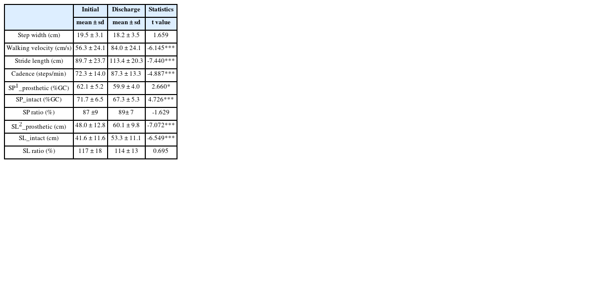 p < 0.001). 걸음길이는 의지측과 건측 모두 유의하게 증가하였지만(