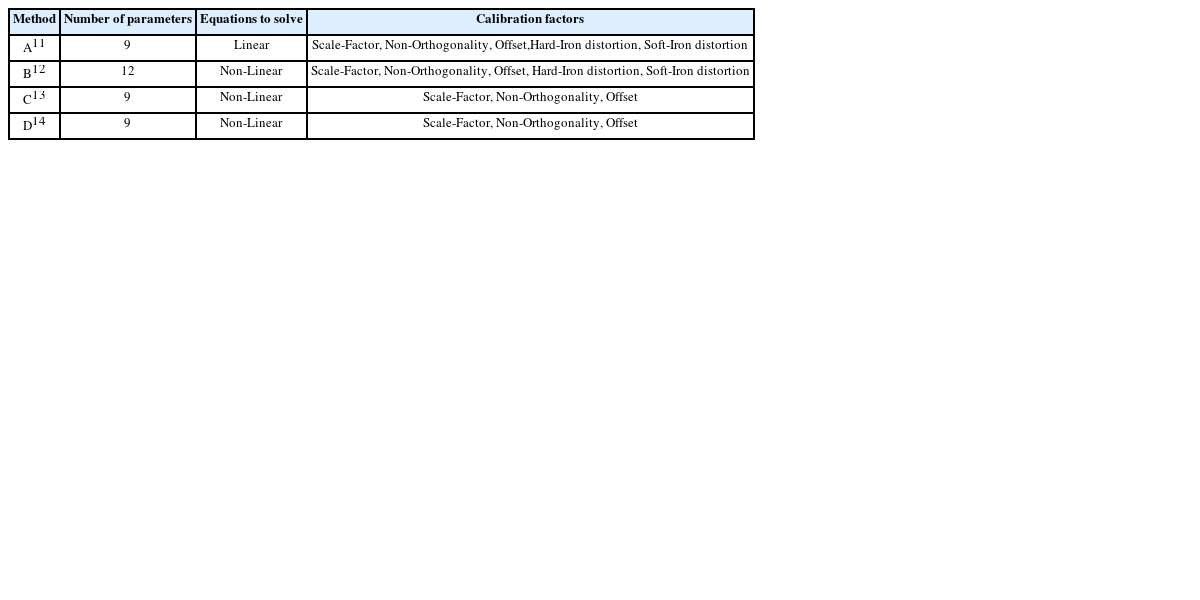 Table 1 Characteristics of magnetometer calibration techniques
