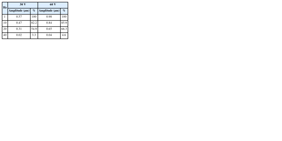 (4) 힌지 출력단에 1N의 부하가 걸렸을 때 0.1 μm 위치정밀도 도달시간은 0.5 s이다.