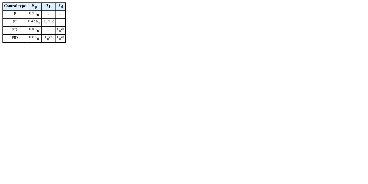 Table 7Ziegler-Nichols chart for tuning a PID controller