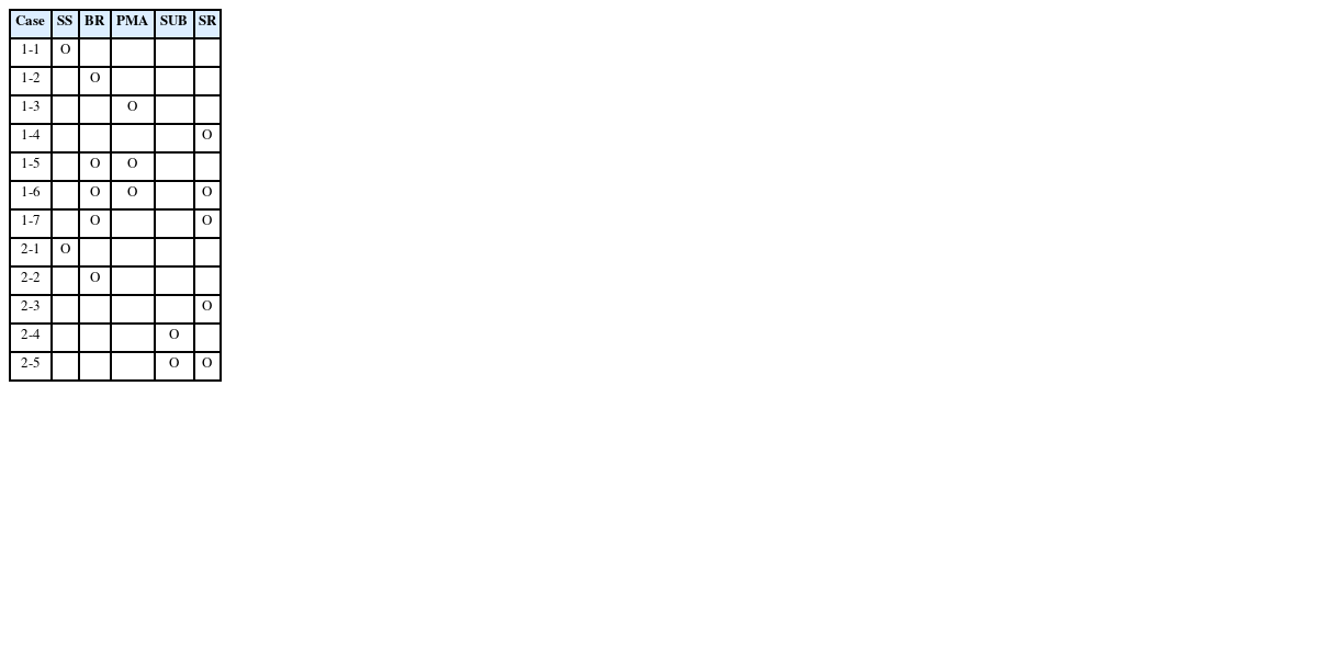 Table 1에 나타나듯이 Blade Rubbing (BR), Shaft Rubbing (SR)과 Parallel Misalignment (PMA)의 복합 결함과 Static Unbalance (SUB)의 복합 결함을 두 가지 Case로 나누어 신호를 취득하여 진동 신호의 시간, 주파수 영역의 19개의 특징을 이용하여 특징 추출(Feature Extraction), 특징 선택(Feature Selection) 및 특징 분류(Feature Classification)하여 특징 기반 고장 유형별 분석 가능성을 확인하였으며, 고장 분류 성능을 평가하였다.