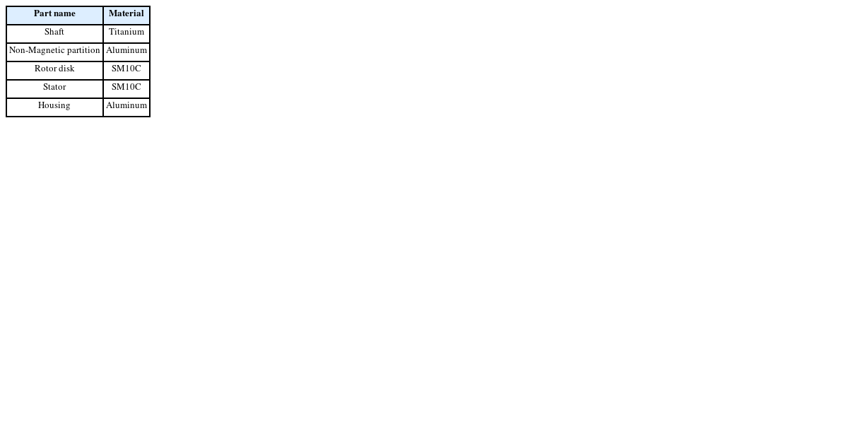 Table 3Materials applied to the MR fluid brake
