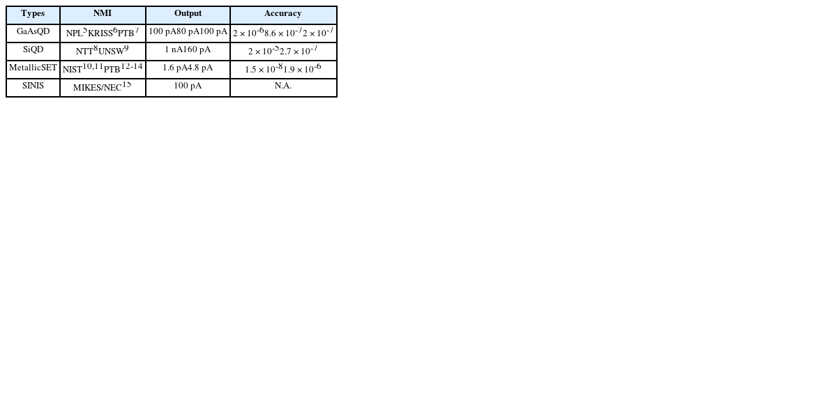Table 1Status of quantum current sources