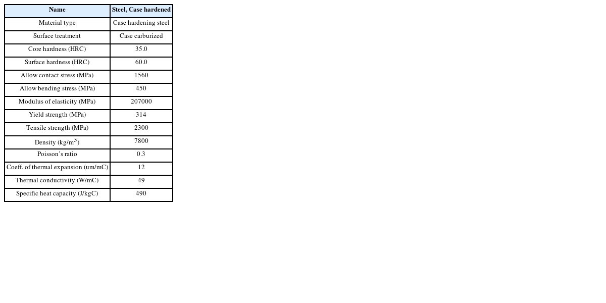 Table 1의 설계조건을 바탕으로 기어의 기계적 성질을 결정하였다.