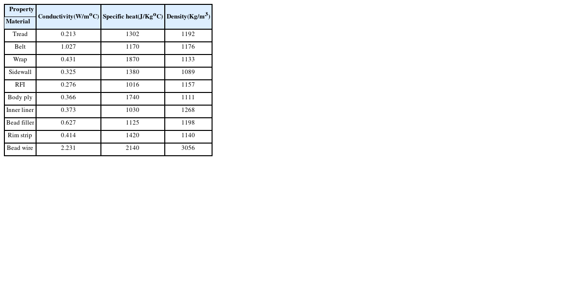 3은 순차적 접근 방식을 적용하여 회전 상태의 래디얼 타이어에 대한 열발생량 산출 및 열전달 해석을 수행하였다. 하지만 상기 연구는 일반 래디얼 타이어에 대한 연구이며 런플랫 타이어에 대한 내부온도 예측과 검증에 대한 연구는 전무한 실정이다.
