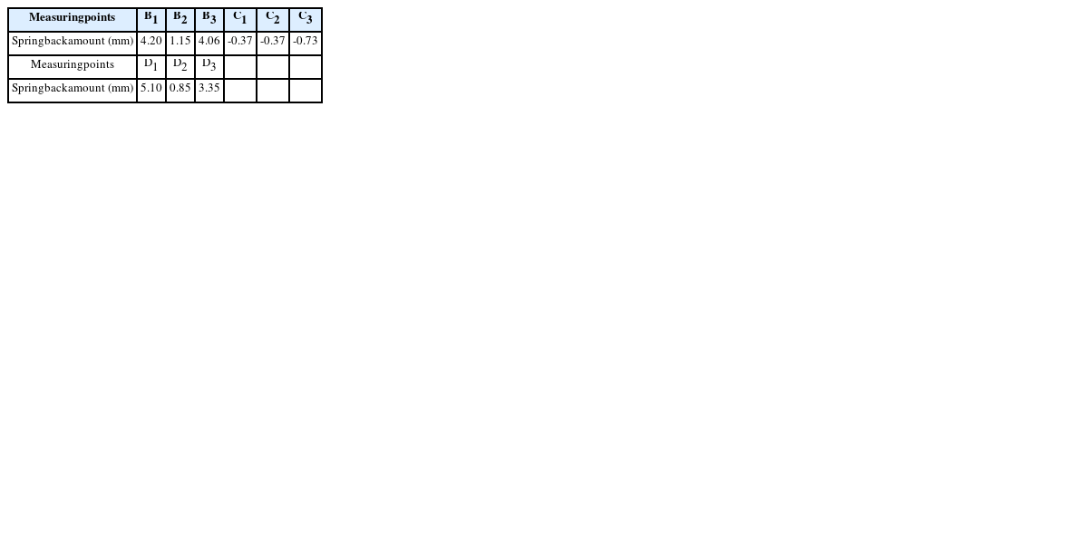 Table 2에 도시한 바와 같이 단면 A-A’에서 길이 방향 스프링백은 최대 1.15 mm가 발생하였으며, 단면 B-B’와 D-D’에서 최대 5.1 mm의 스프링백이 발생하고 있음을 확인하였다.