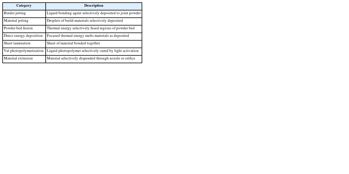 Table 1Additive manufacturing categories as ASTM-F42