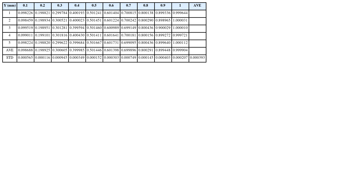 Table 2 Precision measurement of Y direction (unit: mm)