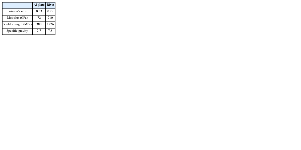 Table 3에보이는 바와 같이 판재는 ECO Al7021-T7, 리벳은 Steel로 구성되었다.