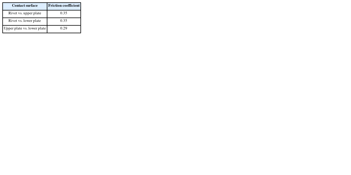 SPR 접합부 인장 유한요소해석에 있어 리벳 접합부의 접촉조건을 위해 사용된 마찰계수는 소결 금속의 마찰계수의 범위 내에서 가장 본 연구의 해석결과와 일치하는 마찰계수를 도출하여