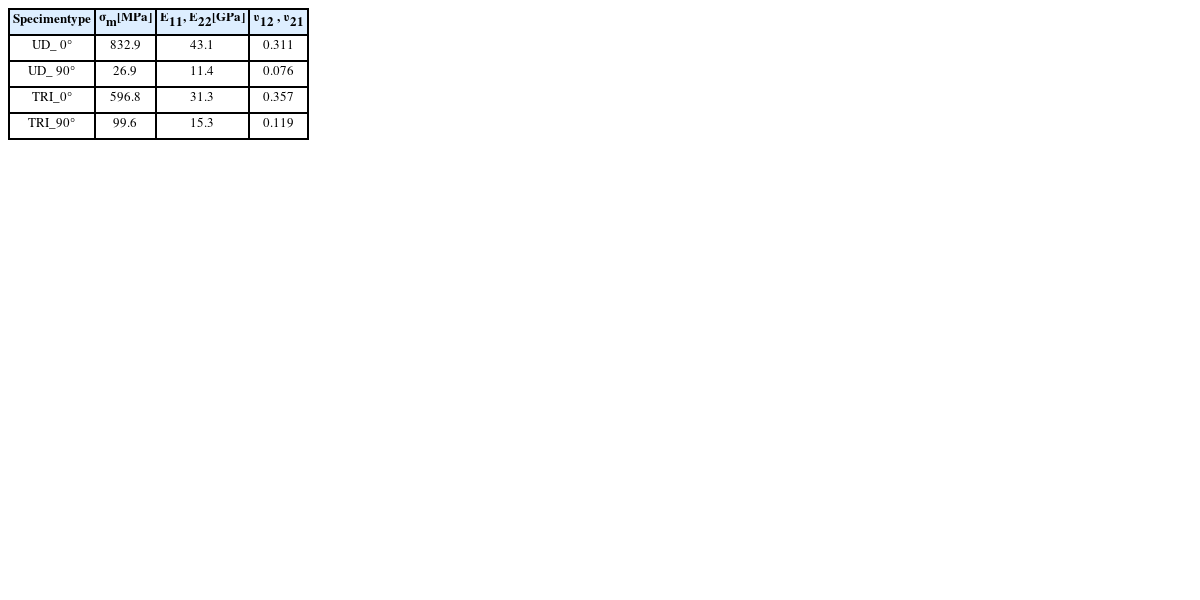 Table 2는 시편인장시험 결과로서 시편 타입별 인장강도, 탄성계수, 포아송 비를 나타내며 5개 시편의 평균값으로 표시하였다.