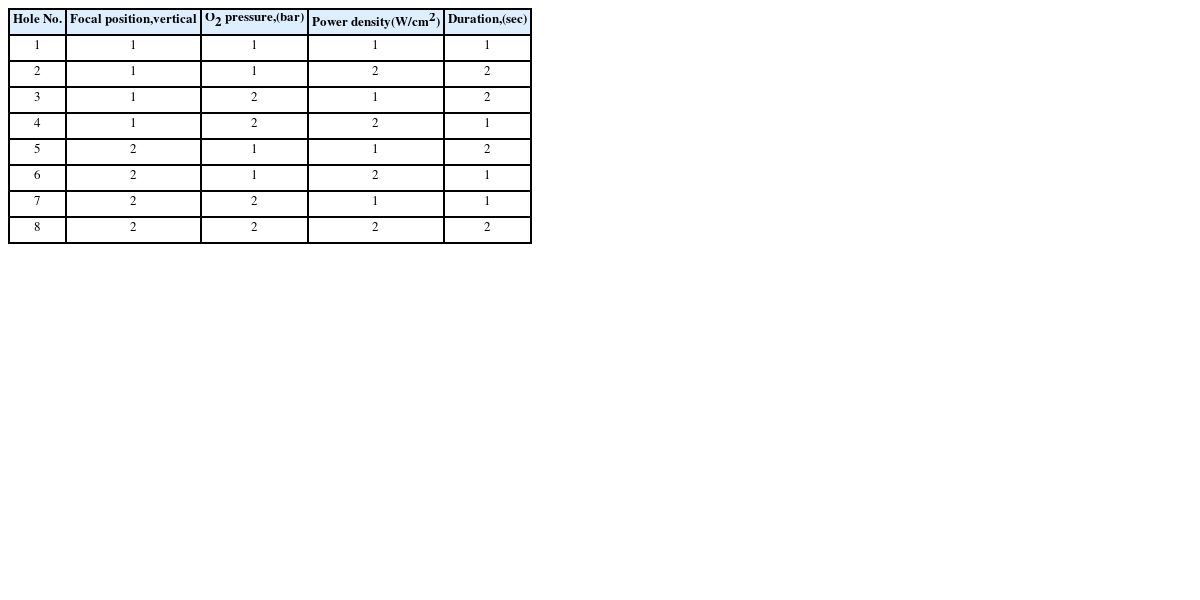 8이 보조가스에 대해 연구한 것을 참고하여 양질의 가공 표면을 얻기 위해 산소를 사용하였다.
