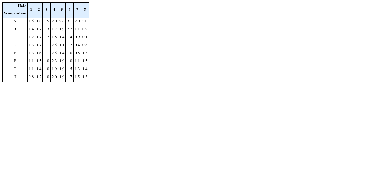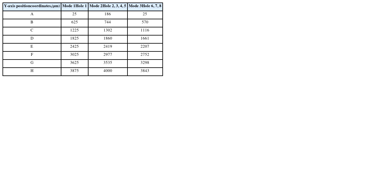 Table 10Evaluation of 8 holes with respect to two factors, μm