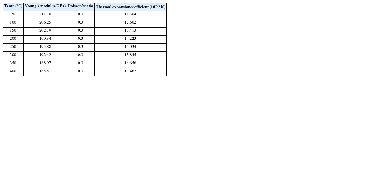 Table 2는 각각 온도에 따른 기계적 물성치와 열 물성치 값을 나타낸다.